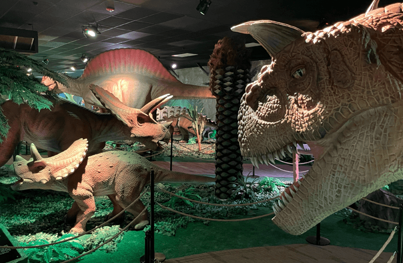 As part of the Volo Museum attractions, Jurassic Gardens opened in 2021 as the Midwest’s only permanent, non-traveling dinosaur adventure. Indoors and open year-round, this 13,000-square-foot attraction features over 40 animatronic dinosaurs set in lifelike prehistoric environments with artificial plants, dramatic lighting, and sound effects. Each dinosaur includes an educational info board, making it perfect for school groups, field trips, and anyone eager to learn more.