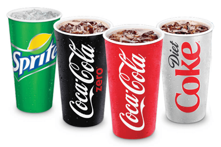 Cold and refreshing—soda, water, and juice pouches for every kind of thirst.