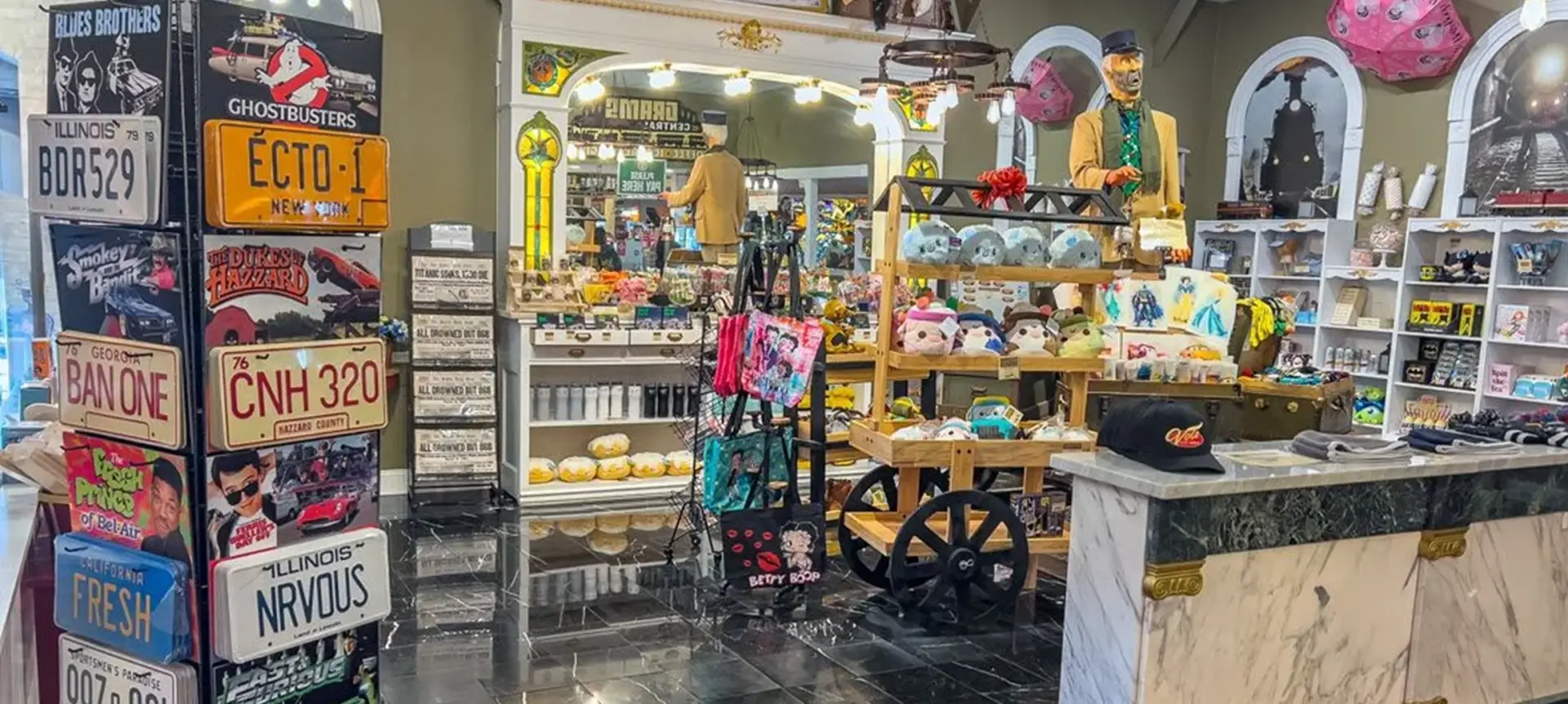 Always fresh and full of surprises, Grams Central Gift Shop is constantly stocked with unique and fun finds. From retro-themed treasures and attraction-inspired items to official Volo merchandise, the selection changes often — giving you something new to discover with every visit.
